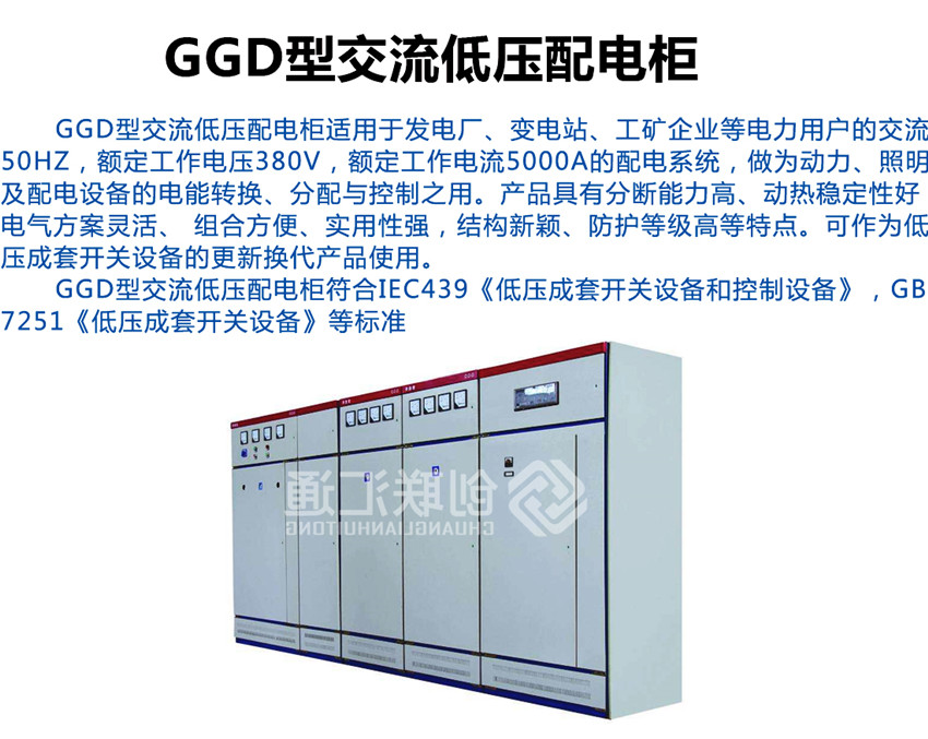 GGD型交流低壓配電柜是根據(jù)能源部主管上級,廣大電力用戶及設(shè)計部門的要求,本著安全、經(jīng)濟、合理、可靠的原則設(shè)計的新型配電柜。產(chǎn)品具有分斷能力高,動熱穩(wěn)定性好,電氣方案靈活、組合方便,系列性、實用性強,結(jié)構(gòu)新穎、防護等級高等特點,可以作低壓成套開關(guān)設(shè)備的更新?lián)Q代產(chǎn)品使用。并且廣泛適用于發(fā)電廠、變電所、工業(yè)企業(yè)等電力用戶作為交流50HZ,額定工作電壓380V,額定電流至3150A 的配電系統(tǒng)中作為動力,照明及配電設(shè)備的電能轉(zhuǎn)換、分配與控制之用。該產(chǎn)品分斷能力高,額定短結(jié)構(gòu)新穎等特點。該產(chǎn)品是我組裝式、固定面板開關(guān)柜的代表產(chǎn)品之一。