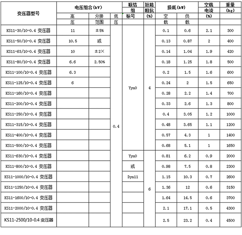 【額定容量】:50~2500kva 【額定電壓】:10/6